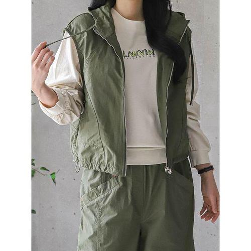 [신상오픈런]골지조끼 미시룩 기본핏 봄레이어드룩 후드집업 (29944410)