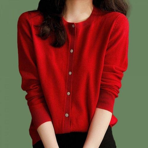 레드 니트 오픈 가디건 남성 가을 겨울 패션 아우터 긴팔 턴다운 칼라 행운의 해 니트웨어 도시 스타일