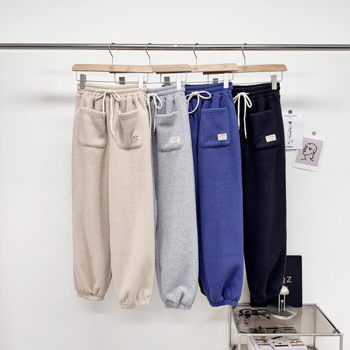 미즈큐즈 / 패치 포켓 양털 뽀글이 덤블 후리스 부클 밴딩 조거