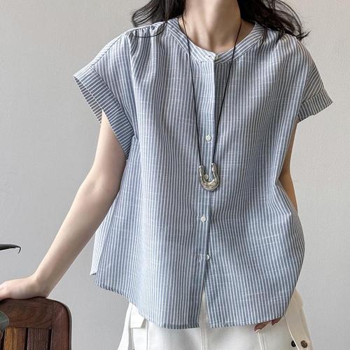 미츠 ST 반팔 블라우스 스트라이프 탑