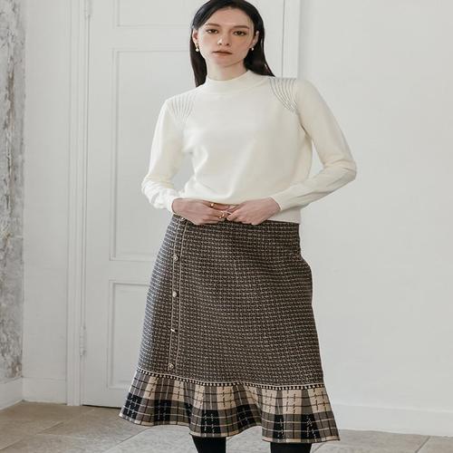 [막스까르띠지오]버튼포인트 믹스 체크 니트 스커트