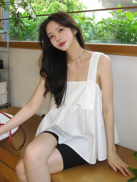 Latium HC06 A라인 이중 주름 민소매 데일리 나시 블라우스 T2523bl16I