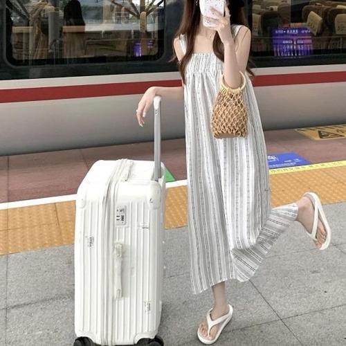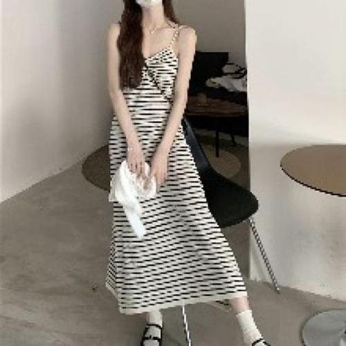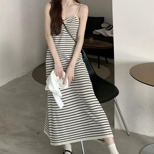 [엄지척]스트라이프 여름 니트 여성 끈나시 롱 원피스 휴양지_19913798_667501
