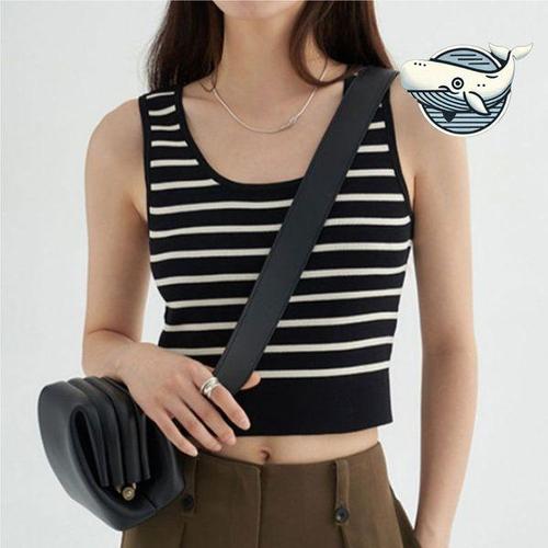[에이치플러스몰]캐주얼 스트라이프 민소매 니트탑 여름 시원한