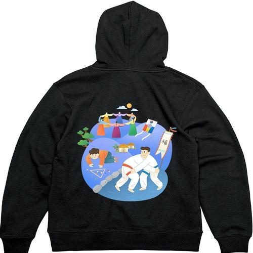 헤비후드티 뒤면 명절 민속놀이그림 다양한색상 전사이즈 WFKMI4Y