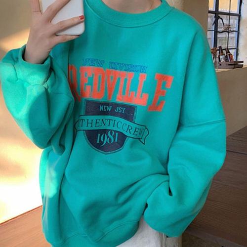 TEMU 여성 솔리드 컬러 스웨트셔츠 여성 가을/겨울 벨벳 두꺼운 풀오버 긴팔 캐주얼 스포츠 탑