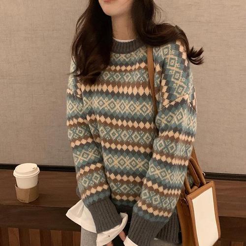 [프리티 글라라]여성 패턴 니트티 스웨터 라운드넥 뜨개 티셔츠 nt-04 (39634722)