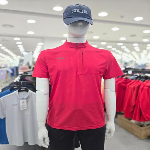 갤러리아_[MILLET] 시원한 스판 우븐+등판 매쉬 하이브리드 집업 반팔티 (M