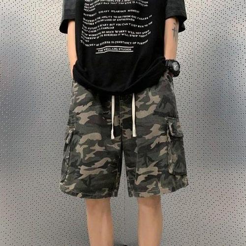 [에이치플러스몰]남자 밀리터리룩 여름 루즈핏 반바지 5부 허리밴딩 카모 팬츠 스트릿 패션 데일리룩