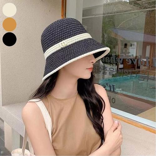 [룽스]데일리 무늬짜임 밀짚모자 봄여름 버킷햇