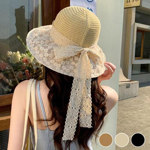 [룽스]레이스 버킷햇 벙거지 밀짚 여성 모자 라탄