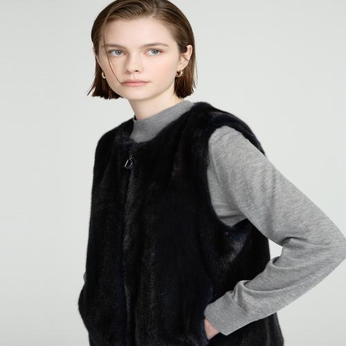 [LUXURY FUR] 네이비 포켓배색 밍크 코트 베스트 (DLCO5D681N2)