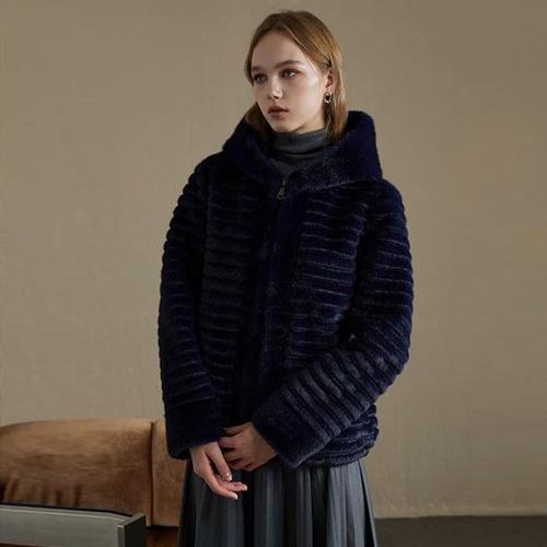 [엘루아][엘루아] VEGAN FAUX 밍크 후드 하프코트_네이비