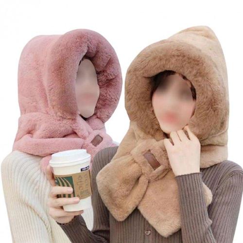 포근한 밍크털 일체형 후드목도리 겨울 방한 모자 목 WFFQEF7
