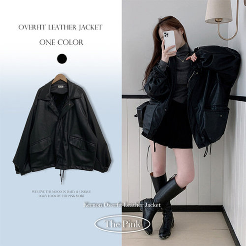 더핑크 / 커논 오버핏 밍크퍼 안감 레더 자켓