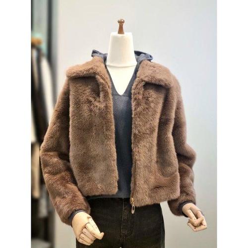 여성 하이넥 밍크 자켓 심플 고급진 코트 루즈핏 두꺼운 털점퍼 도톰 터틀넥 인조 크롭 재킷