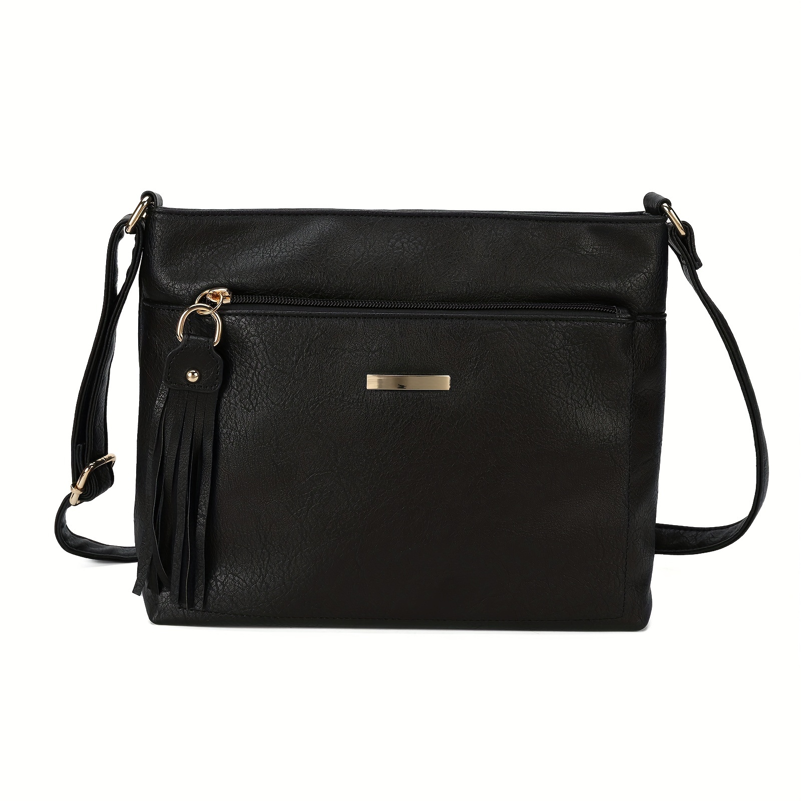 TEMU 빈티지 크로스바디 가방, 다용도 PU 가죽 숄더백, 타셀 장식, 여성용 매신저 백