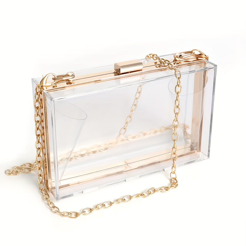 TEMU 투명 아크릴 여성 지갑, 탈부착 가능한 체인 숄더 스트랩이 있는 투명 핸드백, 이브닝 파티, 결혼식 및 행사에 적합, 보안 검사 불필요