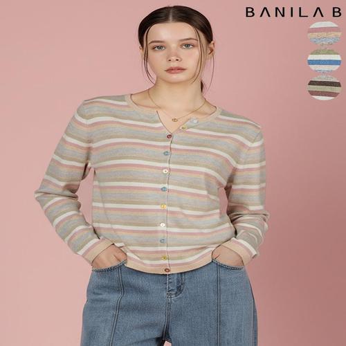 [바닐라비]여성 컬러버튼 멀티 스트라이프 가디건