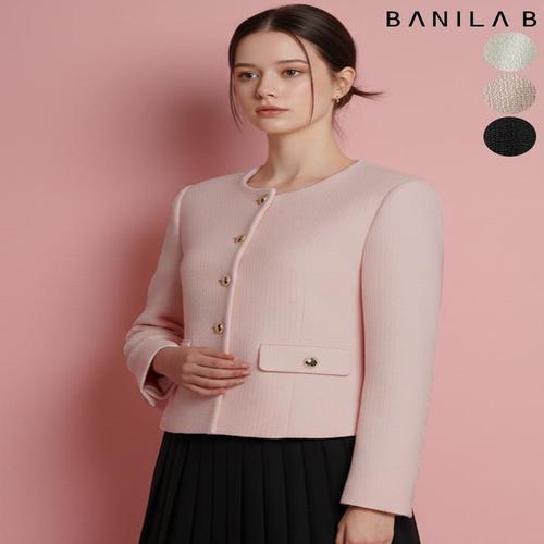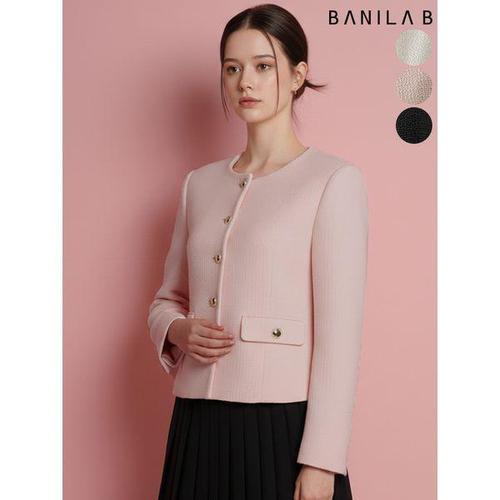 [바닐라비]여성 노카라 라운드 트위드 자켓