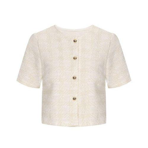 바닐라비 여성 골드버튼 세미크롭 트위드자켓