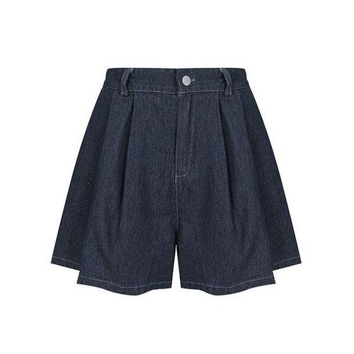[바닐라비] 여성 뒷밴딩 핀턱 데님 하프팬츠