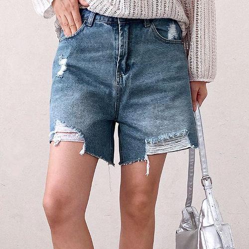 [바닐라비]여성 데미지 워싱 데님 숏팬츠