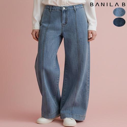 [바닐라비]여성 뒷밴딩 절개 와이드 데님팬츠