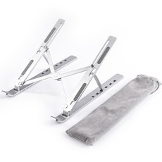 누아트 높이조절 휴대용 알루미늄 접이식 아이패드/맥북/노트북 15.6인치 호환 쿨링 거치대 + 전용 파우치 포함, 실버, 1개