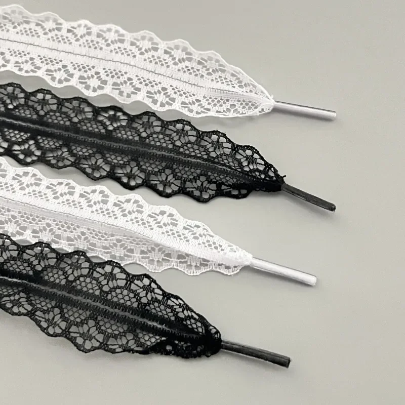 1 쌍 여성을위한 귀여운 레이스 신발 끈 소녀 신발 너비 플랫 신발 끈 운동화 블랙 화이트 신발 끈 액세서리