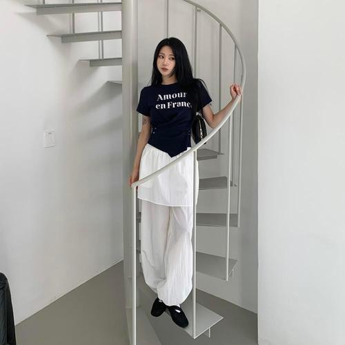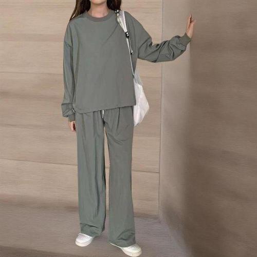 [신상오픈런]여성 스트리트 스타일 바스락 맨투맨과 와이드 팬츠 세트