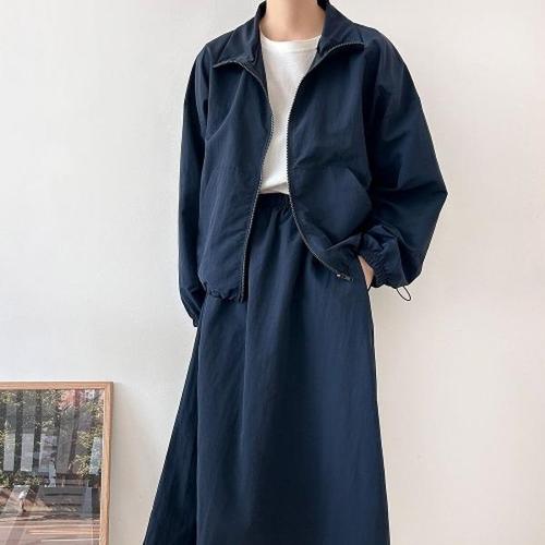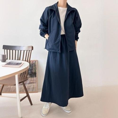잇진 여성 심플 스트릿 바스락 바람막이 카고 롱 스커트 세트