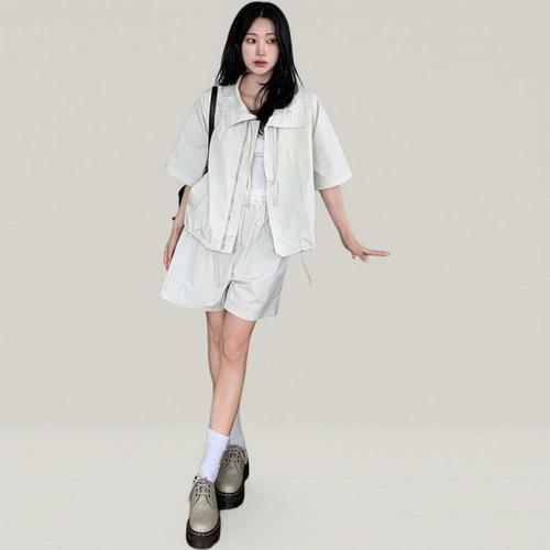 |CHD2637|여성 나일론 바스락 오버핏 반팔 집업 반바지 세트