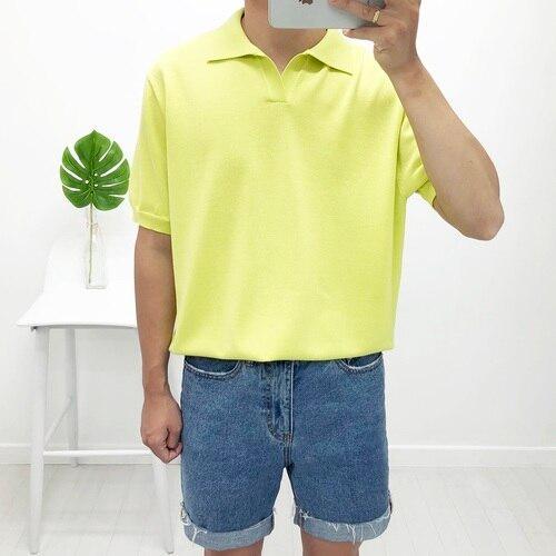 남자 여름 데일리 오픈카라 단가라 반팔 니트티SG-KNH-Q061-검정