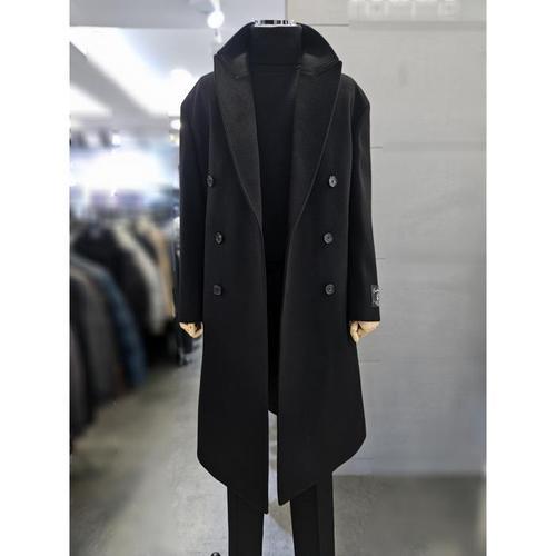 [바쏘옴므]Y4CD-30A 블랙 캐시미어 울 혼방 오버핏 더블 롱 코트