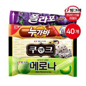 해태 인기 막대아이스크림 40개 골라담기 /요맘때 메로나 비비빅 팥시루떡 엔초 디카페인 커피 캔디바 쿠앤크바