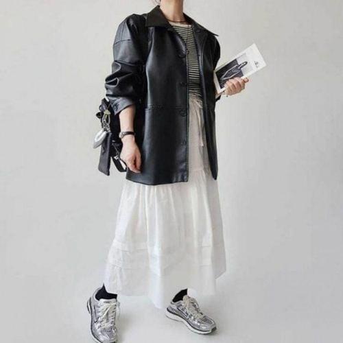 카라넥 아우터 재킷 바이크 레더 부드러운 오버핏