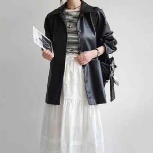 [다잇템]여성용 중간 가죽 검정 바이크 자켓