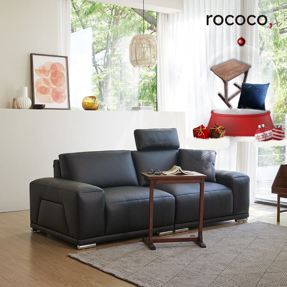 로코코 바젤 카우 천연면피가죽 4인 소파
