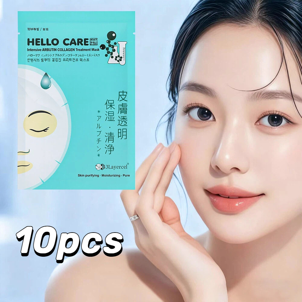 TEMU 콜라겐 마스크 10개 세트 헬로 케어 인텐시브 알부틴 콜라겐 마스크팩 | 잡티 케어·수분탄력·저자극 브라이트닝 톤업 진정 톤업·잡티·수분충전 데일리팩