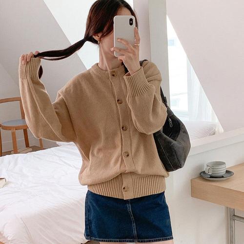 [옷자락]여성용 데일리 박스핏 울 가디건 단추 브이넥