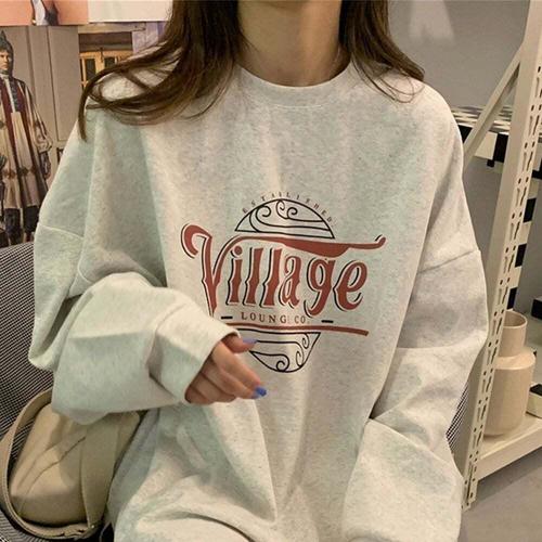 [셀럽하우스]여성 TVKT2924 기모 박스 맨투맨 오버핏 긴 팔 티 셔츠 그레이