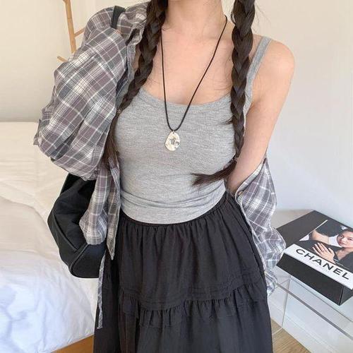 [신상오픈런]여성 내추럴 체크 셔츠 루즈핏 박스 포켓 데일리 스타일