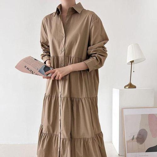 [다잇템]여자 잔주름 티어드 남방 박스핏 롱원피스