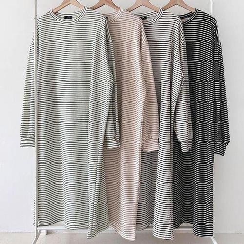 [다잇템]여성 드레스 줄무늬 라운드 벌룬 박스 긴기본