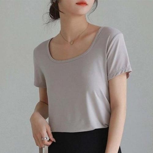 [옷자락]여자 탱크 U넥 면원단 박스티 단가라반팔 티셔츠