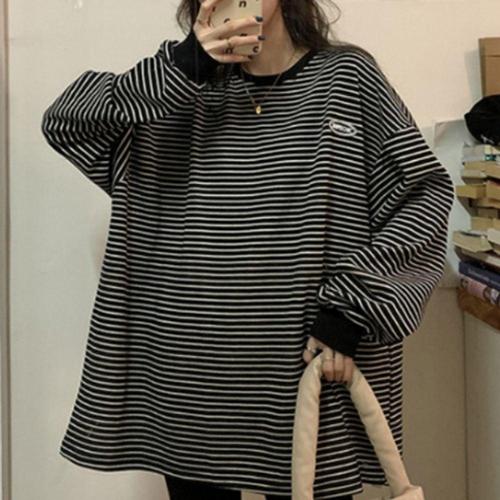 여성 넓은 스트라이프 맨투맨 1P 박스핏 긴팔티 패션 WFK2BSB
