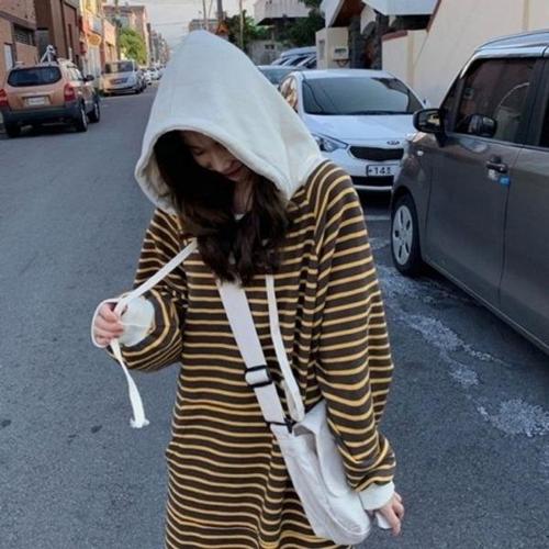 [엄지척]루즈핏 후드 캐주얼 박스핏 미니원피스 스트라이프 원_19870378_667501