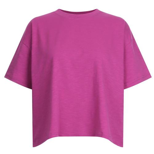 [샵앤][샵앤] 국산 여성 라운드 박시 루즈핏 세미크롭 반팔 티셔츠 DAI-WSH-20768-핑크