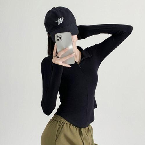 집업 슬림핏 긴팔 반목 크롭 집업 티셔츠 WFM72A0